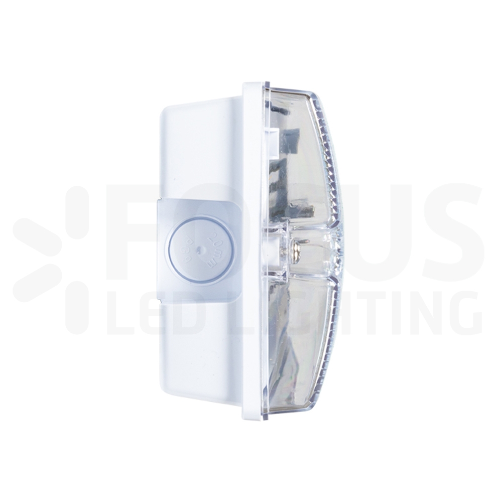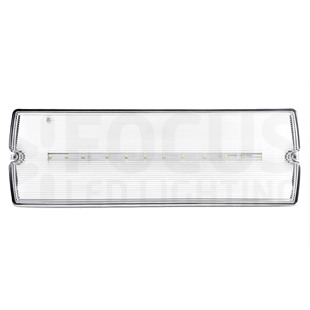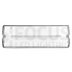 Opbouw led noodverlichtingsarmatuur met witte behuizing (IP65) en heldere, slagvaste (IK08) polycarbonaat kap. Zonder gebruik van pictogrammen is het armatuur toe te passen als anti-paniek noodverlichting of portiekverlichting. In combinatie met de meegeleverde pictogrammen is de bulkhead toe te passen als vluchtwegaanduidingsarmatuur. Het armatuur is leverbaar in drie verschillende wattages/lumen outputs en uitgevoerd met testknop, led indicator en 3 uurs duurzame LifePO4 accu. De bulkhead wordt compleet geleverd met wartel voor een waterdichte kabelinvoer en pictogramstickers man pijl links, rechts en boven (zichtbereik 24m). Dankzij de multifunctionele elektronica is het armatuur zowel maintained als non-maintained te gebruiken. Zie opties voor de vele extra mogelijkheden.